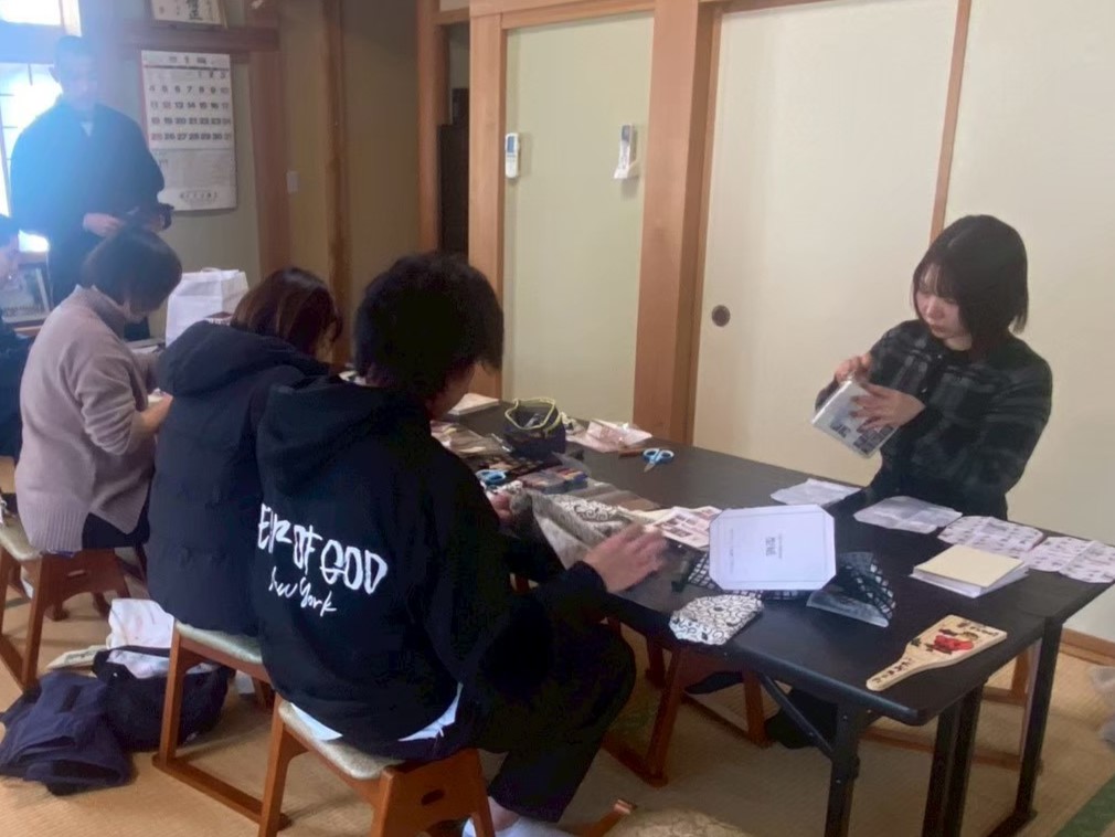 御朱印作りでは自分で選んだ生地で帳面の表紙の表と裏を張り合わせ、オリジナル御朱印帳を作りました。