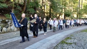 初日は身延山駐車場から、御廟所へ唱題行脚を行い日蓮聖人へ報恩の誠を奉げました。