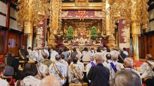 また、11時より法主猊下お目通りが旧書院で行われました。法主猊下は「懐かしい顔に会えて嬉しいです。今後も身延山を盛り上げる為、気軽にお参りください。」と歓迎してくださり、檀信徒一同笑顔に溢れました。