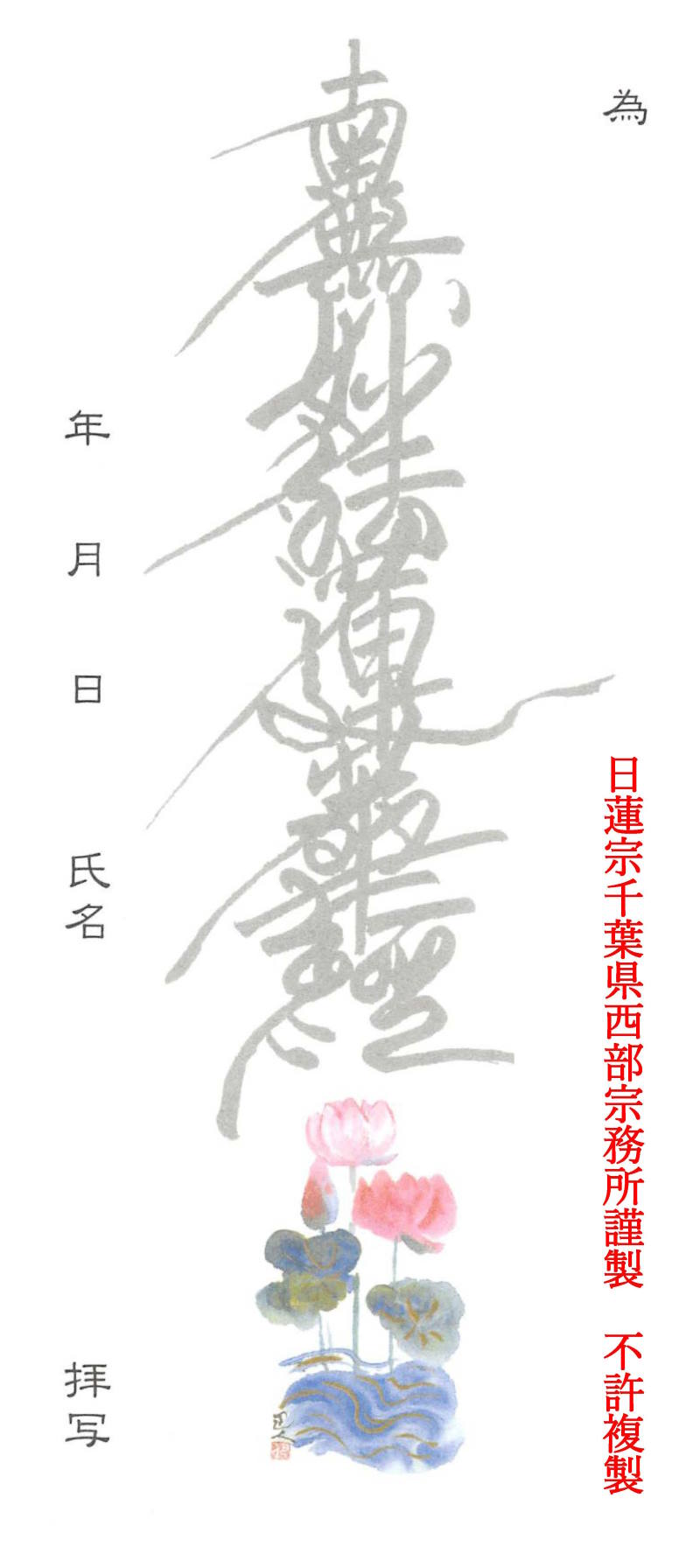 郵便振替口座 0240-7-80955 「御題目写経推進本部」